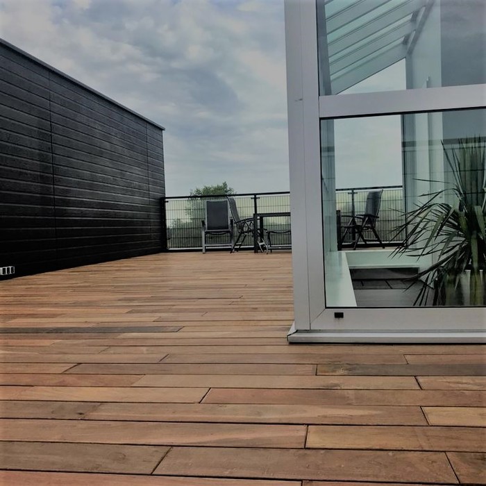 Wir haben Zugang zu einer großzügigen Dachterrasse, dessen Renovierung schon seit längerem überfällig ist. Dank einer Ipe-Terrasse von Hartholz Discount sieht die Terrasse wieder atemberaubend aus. Es ist nun ein wirklich schöner Ort, die Sonne zu genießen oder abends mit Freunden etwas zu trinken. Großen Dank an das Beratungsteam!