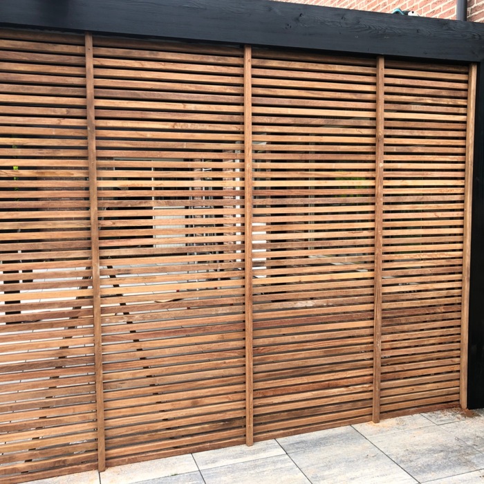 Balkenzaun mit massiven 4x4 cm Ipé-Balken Rhombusleisten ist die erste Wahl für einen luxuriösen, dreidimensionalen Look in Ihrem Garten. Im Gegensatz zu flachen Lamellen erzeugen diese quadratischen Balken ein faszinierendes Schattenspiel und eine unvergleichliche Robustheit. Gefertigt aus der höchsten A-Qualität (FAS) Ipé-Hartholz, entscheiden Sie sich für ein Projekt mit einer Lebensdauer von 30 Jahren oder mehr.