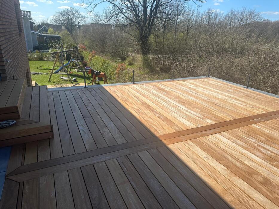 "Für unsere Dachterrasse in Dusseldorf haben wir eine vlonder gesucht, die sowohl langlebig als auch ästhetisch perfekt ist. Nach ausführlicher Beratung haben wir uns für die Ipé-Terrassendielen (2,1 x 14 cm) mit dem unsichtbaren B-fix Clipsystem entschieden. Das Ergebnis ist wirklich umwerfend. Da keine Schrauben zu sehen sind und die Montageclips verdeckt liegen, hat die Terrasse eine extrem luxuriöse Ausstrahlung erhalten, die wunderbar zu unserer Inneneinrichtung passt. Trotz praller Sonne und Wind im obersten Stockwerk bleiben die Dielen kerzengerade liegen. Die Lieferung war perfekt organisiert und die Materialien waren von absoluter Spitzenqualität. Ein kleiner Minuspunkt war, dass wir etwas länger auf die Randabdeckung warten mussten, die nachgeliefert wurde, aber der Service und das Endergebnis machen das mehr als wett. Wir genießen jeden Tag unser eigenes Stück Wellness in der Stadt"